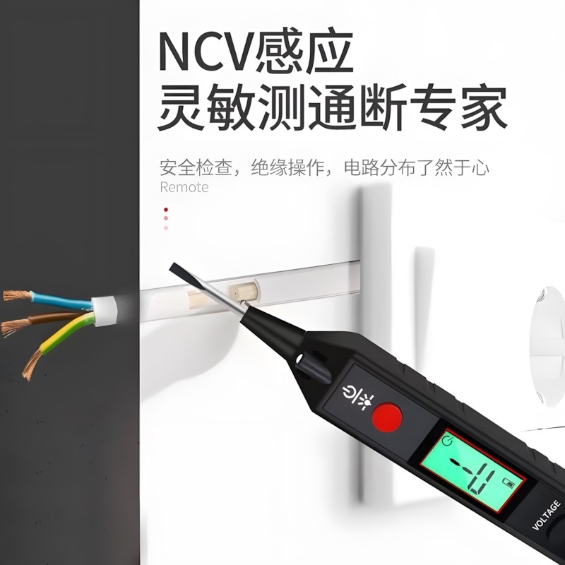 Equipped with a sturdy metal NCV probe for testing AC voltage,the test probe touches the conductor with AC voltage,and the voltage reading will show on display.To obtain more accurate values,it is recommended not to wear gloves when using.
